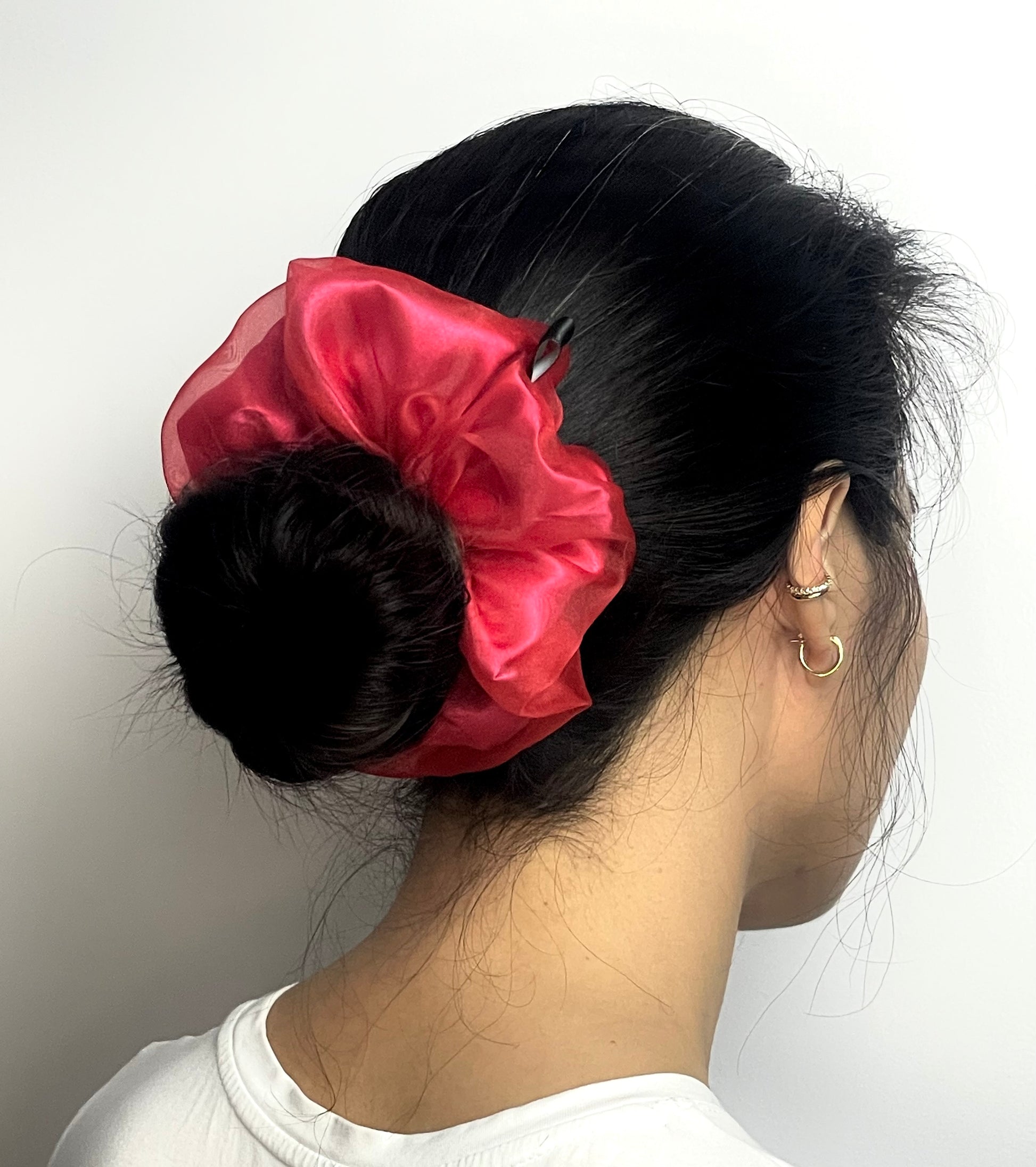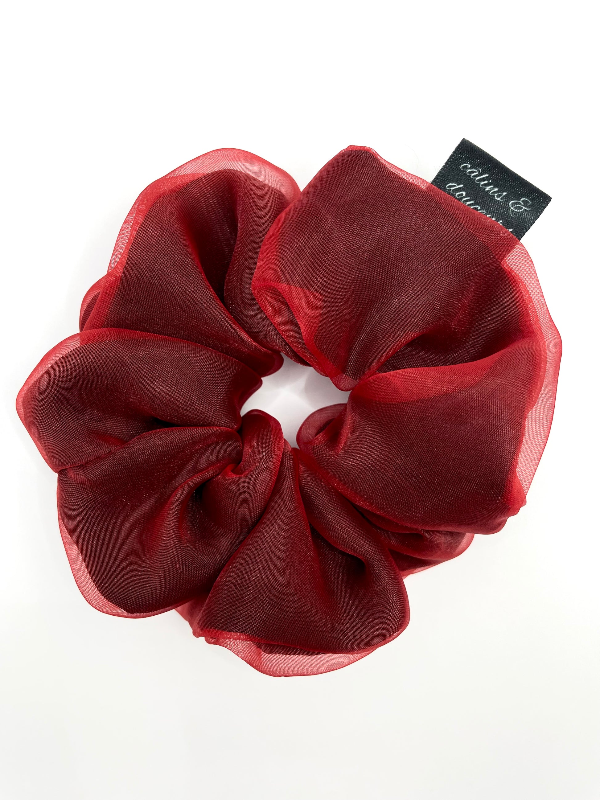 Elegant yet daring, the matted red organza scrunchie brings a fiery touch of sophistication to your hair, perfect for special occasions or adding flair to any outfit.