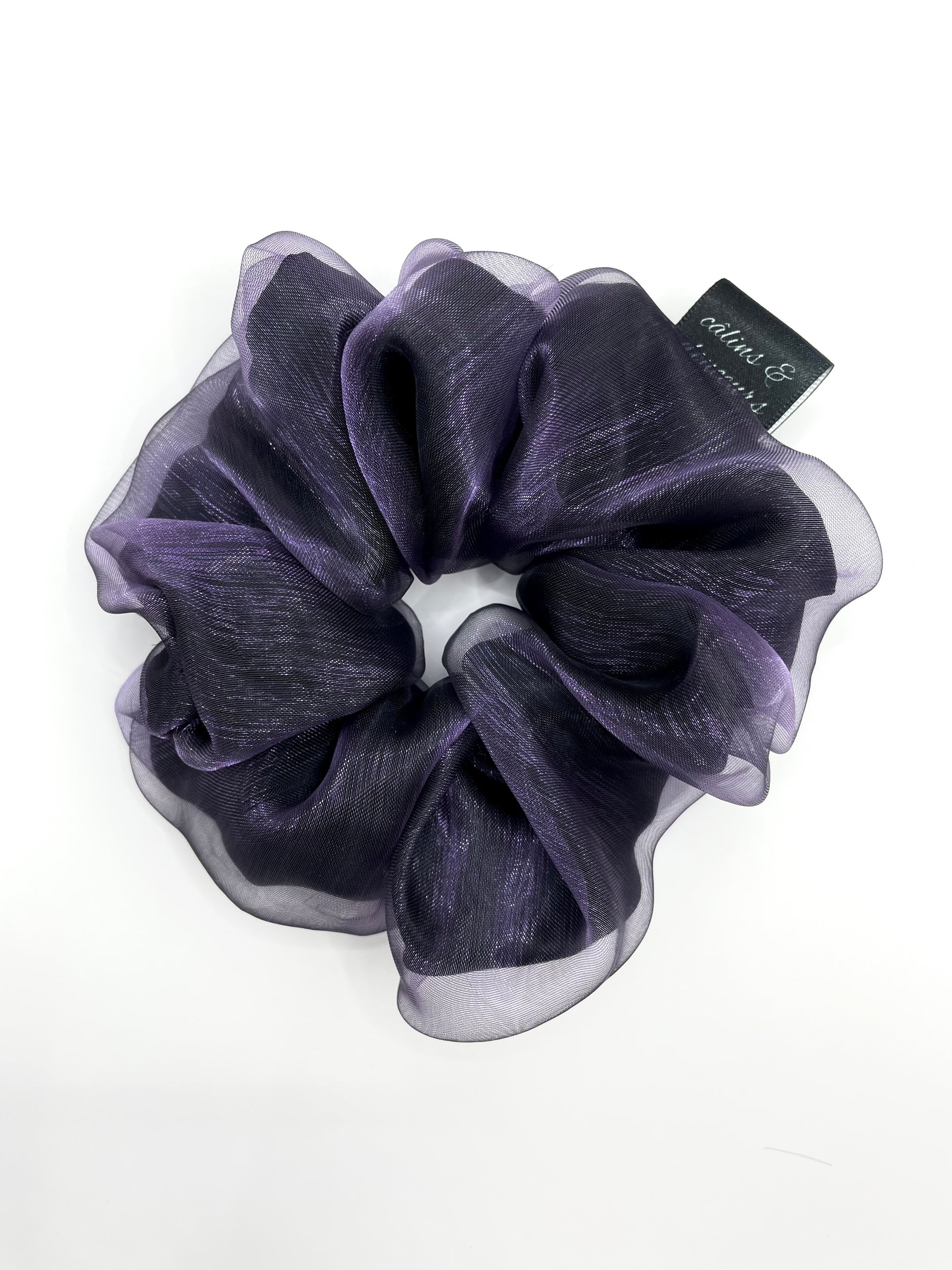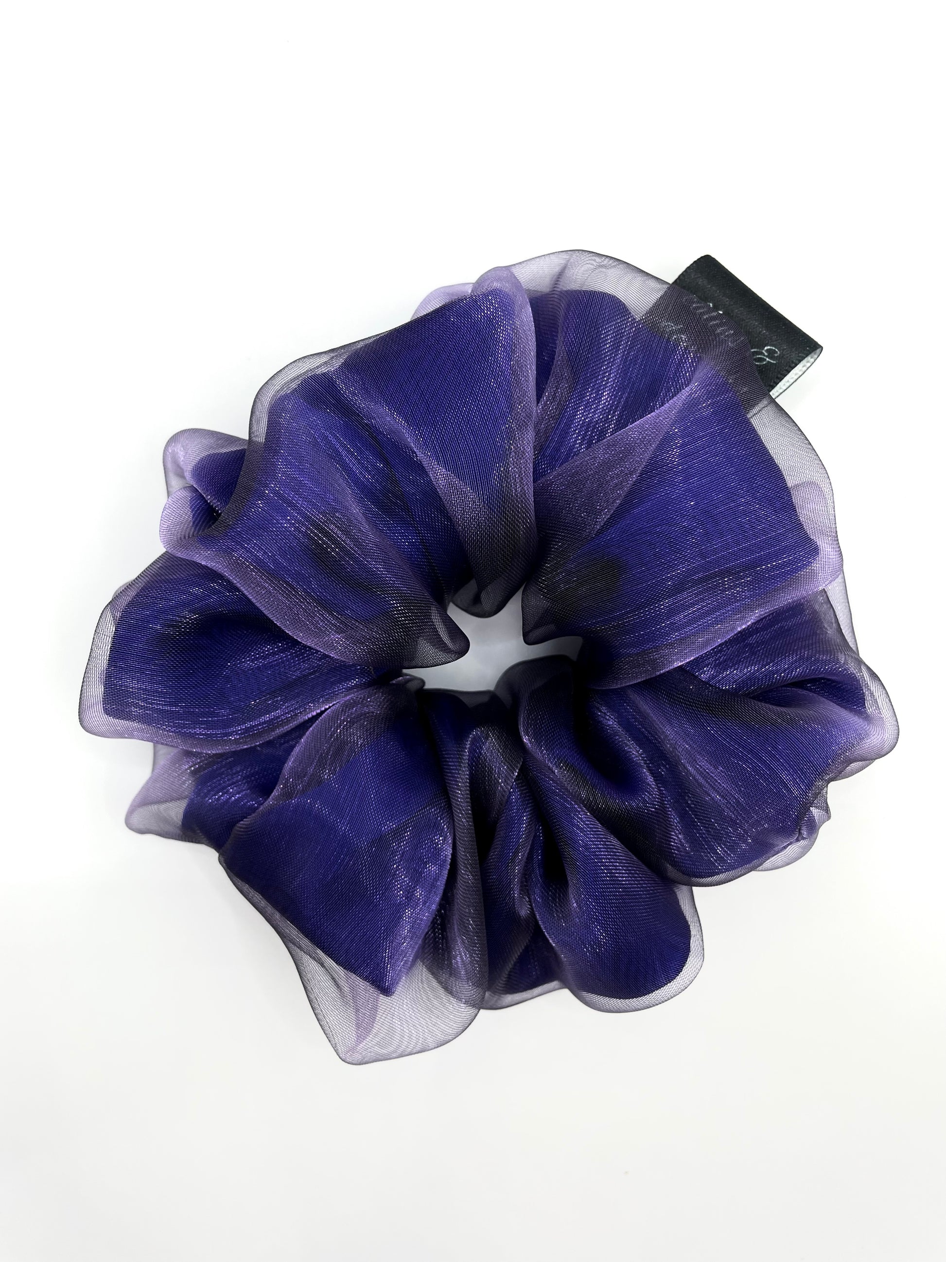 Bold and vibrant, the metallic purple organza scrunchie adds a pop of color and shine, making it the perfect accessory for a fun, playful style.